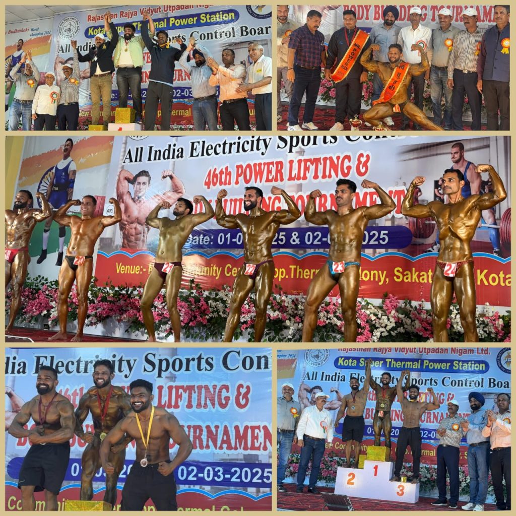 कोटा, 3 मार्च 2025 – कोटा थर्मल में आयोजित 46वीं अखिल भारतीय विद्युत पावरलिफ्टिंग और बॉडीबिल्डिंग प्रतियोगिता का भव्य समापन हुआ। इस टूर्नामेंट में राजस्थान की टीम ने शानदार प्रदर्शन करते हुए पावरलिफ्टिंग में दो स्वर्ण, तीन रजत और एक कांस्य पदक जीता और पहली बार टीम चैंपियनशिप में दूसरा स्थान प्राप्त किया।