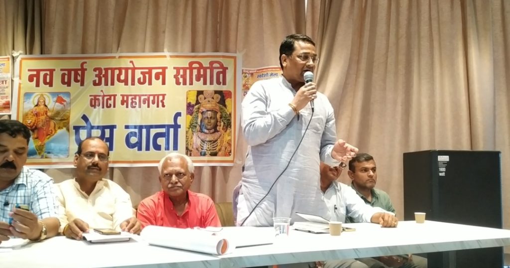 कोटा, 27 मार्च – हिंदू नववर्ष विक्रम संवत 2082 के उपलक्ष्य में कोटा में भव्य और दिव्य “हिंदू नववर्ष शोभायात्रा” का आयोजन किया जाएगा। इस आयोजन की तैयारियों को लेकर हिंदू नववर्ष उत्सव आयोजन समिति द्वारा प्रेस वार्ता आयोजित की गई, जिसमें अध्यक्ष गोविंद नारायण अग्रवाल, महामंत्री छगन माहुर और स्वदेशी मेला संयोजक किशन पाठक सहित अन्य पदाधिकारियों ने विस्तृत जानकारी दी।