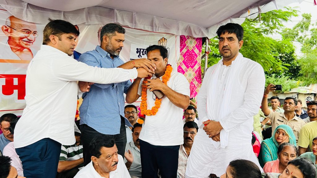 आमरण अनशन पर बैठे कांग्रेस पार्षदों में उपमहापौर पवन मीणा, देवेश तिवारी, इसरार मोहम्मद, ऐश्वर्य श्रृंगी ‘अंशु’, कुलदीप गौतम, कुलदीप प्रजापति, सोनू अब्बासी, दीपक कुमार और बबलू कसाना शामिल रहे।