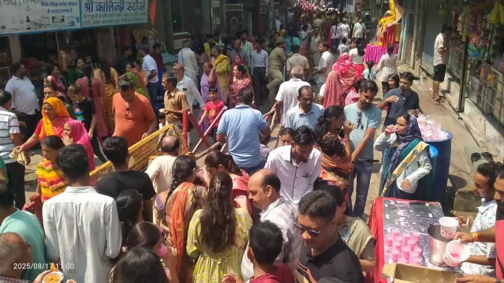 मंदिर पर सुबह से ही ठाकुर जी स्वर्ण जड़ित पलना में विराजमान रहे। जिन्हें एक टक देखने के लिए भक्त पूरे दिन उमड़ते रहे। महिलाएं दर्शन करते हुए लाला की बलाइयां लेती रहीं। नंदोत्सव के दौरान बधाइयां गूंजती रहीं। प्रथम पीठ युवराज गोस्वामी मिलन कुमार बावा ने मथुराधीश प्रभु की स्त्री भाव से सेवा की। उन्होंने यशोदा का रूप धरकर लाला का पलना झुलाया। वहीं मुखिया जी नन्दराय और सभी सेवक ग्वाल बाल बने। लाला को तरह-तरह के खिलौने से रिझाया गया। हल्दी मिला हुआ दूध, दही उछाला गया तो भक्त भी “नंद के आनंद भयो जय कन्हैया लाल की…” गाते हुए झूम उठे।