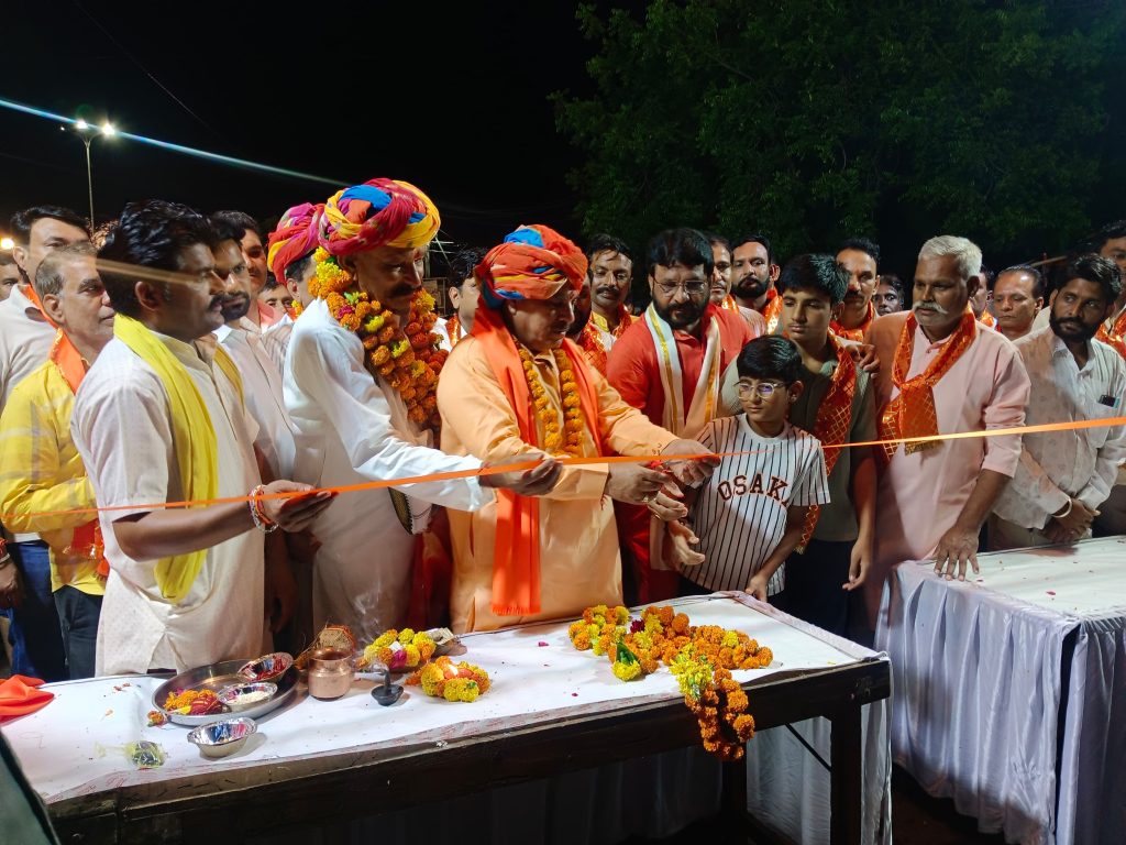 भगवान खड़े गणेश जी मन्दिर पर परंपरागत पंच ध्वजा चढ़ाने के साथ ही दो दिवसीय मेले का शुभारंभ हुआ। उद्घाटन के अवसर पर गोदावरी धाम के संचालक बाबा शैलेन्द्र भार्गव, पूर्व सरपंच रामलाल गुंजल मेला संयोजक ओम गुंजल, अध्यक्ष अजय गुप्ता, सतेंद्र प्रधान, एडवोकेट हेमंत शर्मा, नरेन्द्र मीणा, जंगदीश यादव, दीनदयाल शर्मा, नवीन दिवाकर, राघव शर्मा, कमल मेघवाल समेत विभिन्न लोग ध्वजा लेकर चल रहे थे।