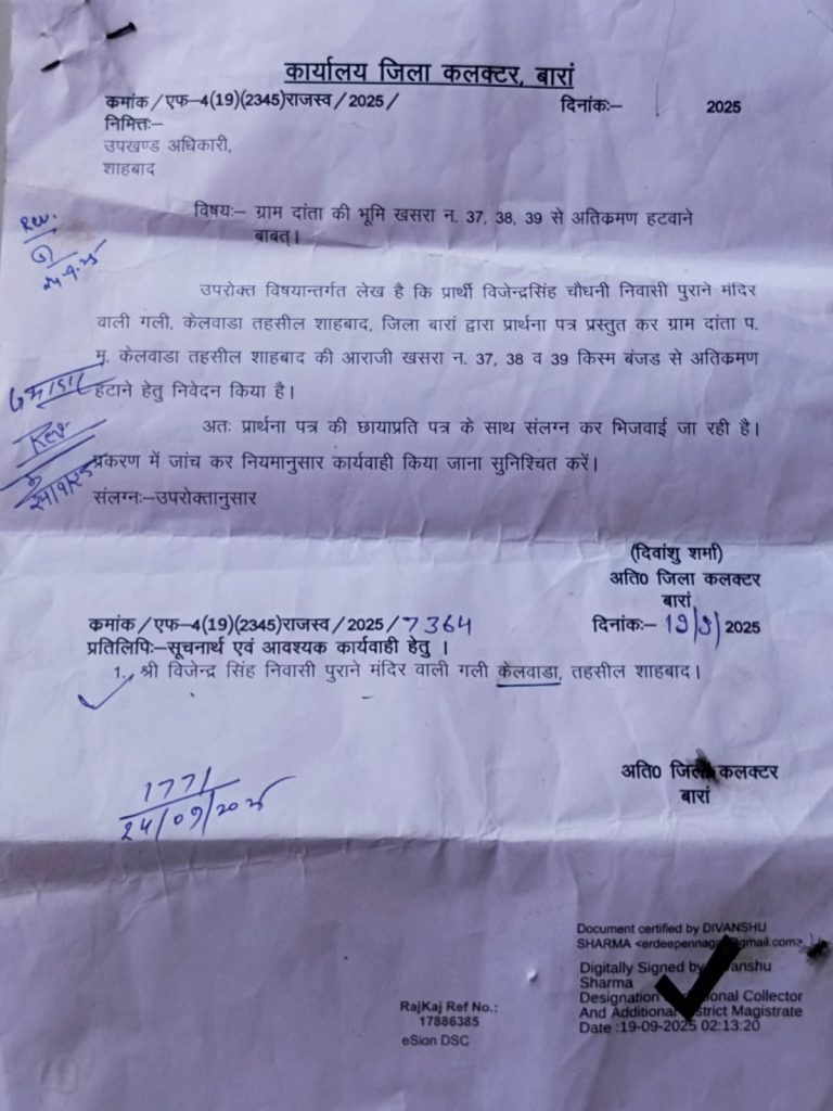 पूर्व में जब इस मुद्दे पर मीडिया ने खबर प्रकाशित की थी, तब जिला कलेक्टर बारां ने तत्काल संज्ञान लेते हुए उपखंड अधिकारी शाहबाद को खसरा नंबर 37, 38 और 39 से अतिक्रमण हटवाने के आदेश जारी किए थे।