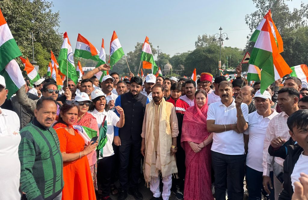 विधायक संदीप शर्मा, विधायक कल्पना देवी और जिलाध्यक्ष राकेश जैन ने हरी झंडी और तिरंगा दिखाकर पदयात्रा को रवाना किया।