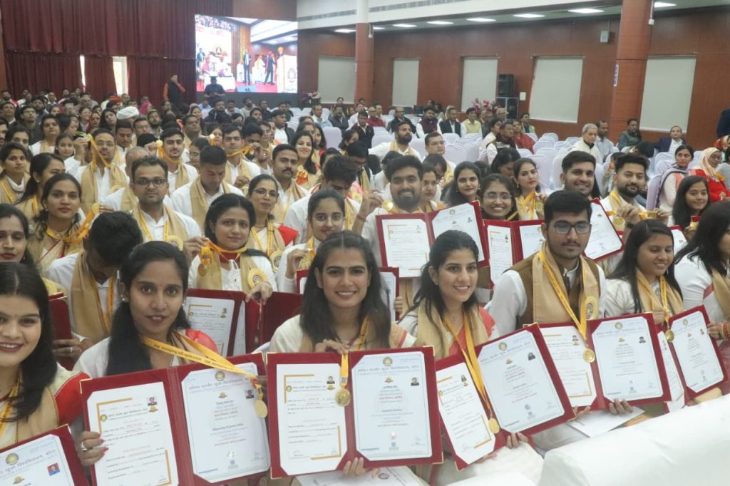 अपने प्रेरणादायी संबोधन में कुलाधिपति ने दीक्षित विद्यार्थियों से आह्वान किया कि वे अर्जित ज्ञान और डिग्रियों का उपयोग अपनी बौद्धिक क्षमताओं के विस्तार, प्रतिभा के परिष्कार और ‘राष्ट्र सर्वोपरि’ की भावना के साथ समाज व देश की सेवा में करें। उन्होंने देव–दानव संस्कृति का उल्लेख करते हुए कहा कि सहयोग, सहचर्य और एक-दूसरे को आगे बढ़ाने की मानसिकता से ही विकसित भारत के संकल्प को साकार किया जा सकता है।